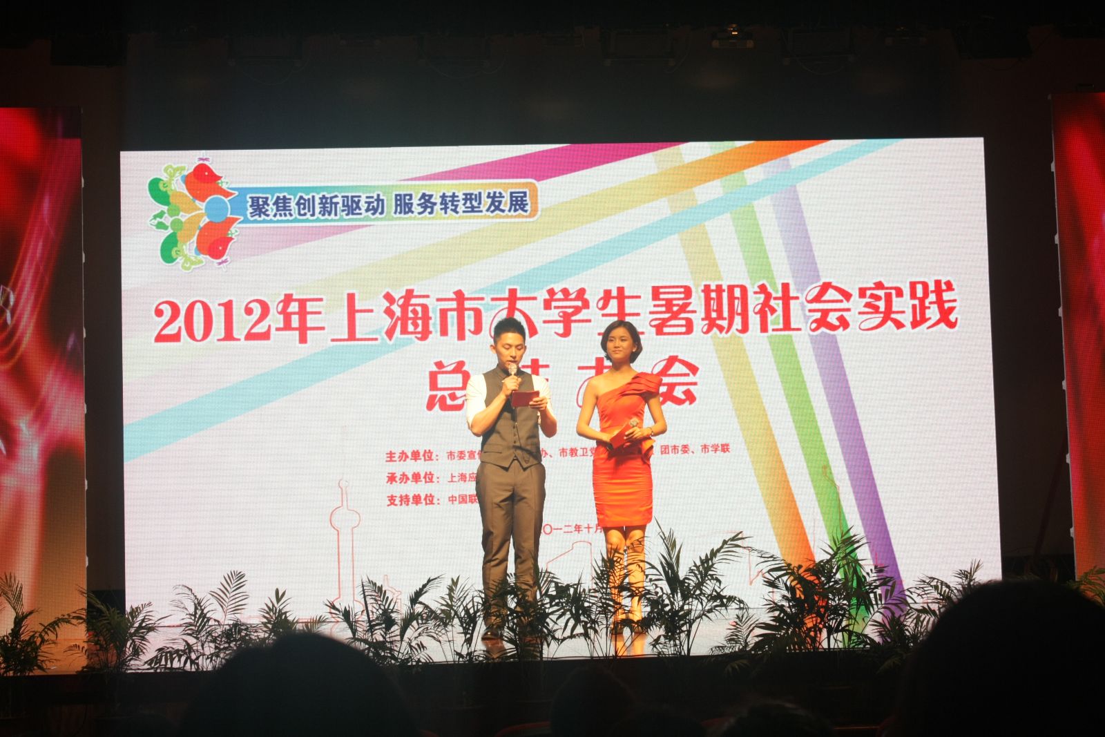 10月30日下午,2012年上海市大学生暑期社会实践活动总结大会在上海交通大学医学院隆重举行。市委宣传部、市文明办、市教卫党委、市教委等主办单位领导以及市建交委、市绿化和市容局等有关单位领导出席了大会。大会回顾和展示了今年大学生社会实践活动取得的丰硕成果,表彰了一批在活动中表现突出的项目、个人和集体,总结了开展大学生社会实践工作的经验。
