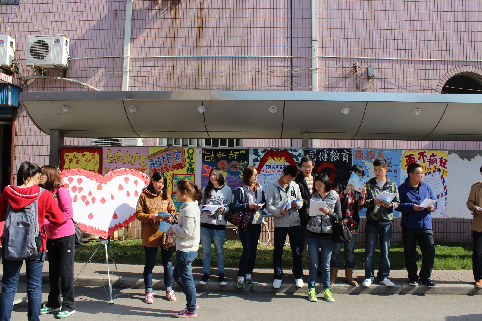 波涛让江河澎湃,热血使生命沸腾!为了让生命得到更好的延续,为了使爱心永驻人间。2012年11月14日中午11:30分,园艺园林系学生会在校园食堂门口进行献血知识宣传。