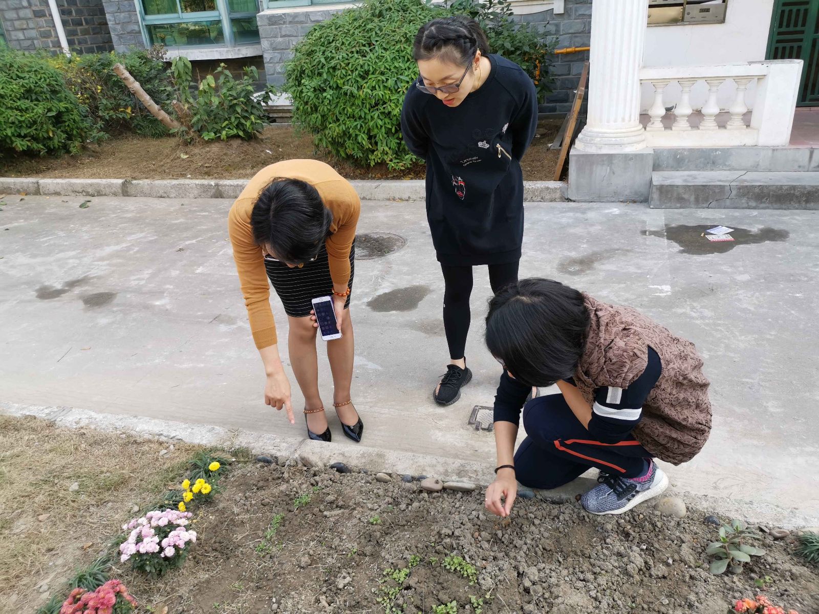 在世纪新城社区党支部书记沈俐的带领下,教师们现场察看了首批改造区块植物种植后的效果,发现由于种植方式不当、虫害严重等,植株的存活率较低。随后,教师们结合秋季特点,在植物品种选择、植物种植方式及后期养护等方面给出了积极建议。王欢表示,今后将充分发挥师生的专业优势和志愿服务队资源优势,持续派出专业教师和学生志愿者来帮助社区推进“一米花园”改造。前期,支部党员教师已在社区开展了一次植物相关培训。