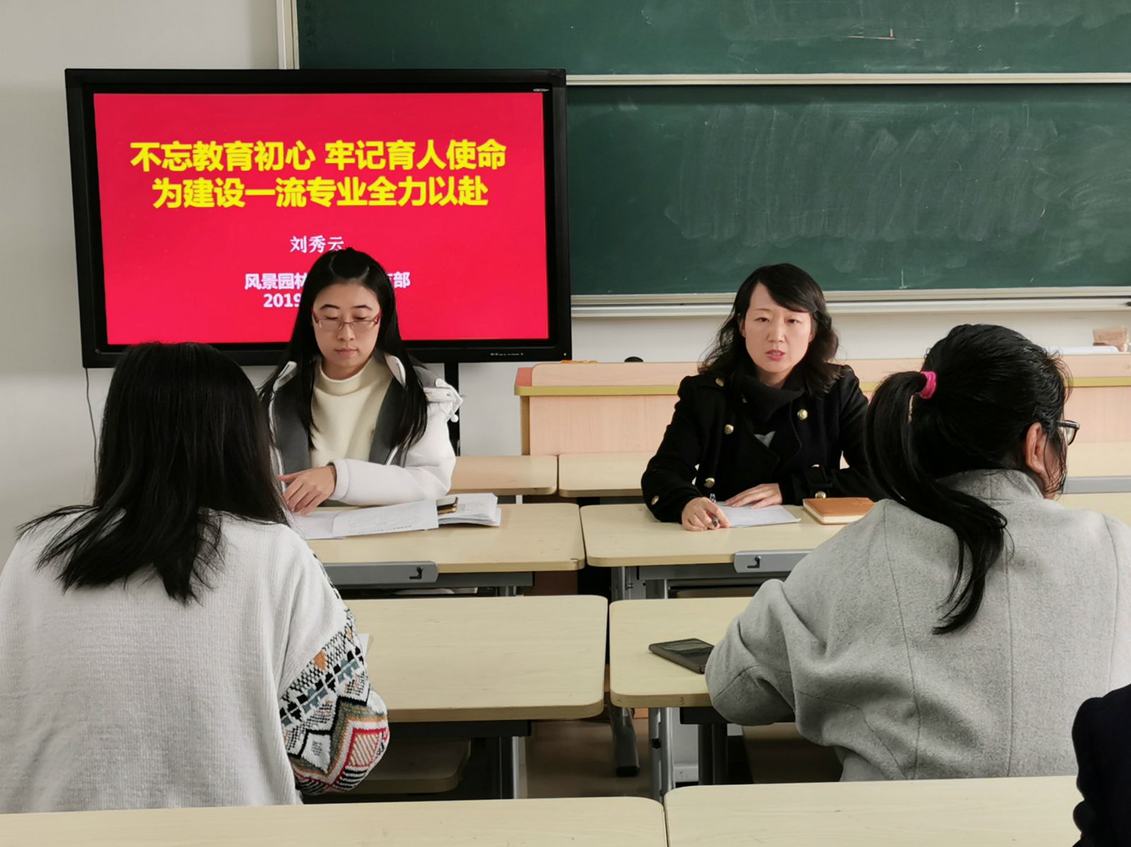 为深入推进支部“不忘初心、牢记使命”主题教育工作开展,充分发挥班子成员的带头作用,11月22日下午,在综合楼503室,园林系主任刘秀云、副主任闫妍给支部全体党员上主题教育微党课。