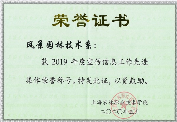 经申报、评比,2019年学院宣传信息工作先进集体评比于2020年5月27日落下帷幕,园林系荣获此荣誉。