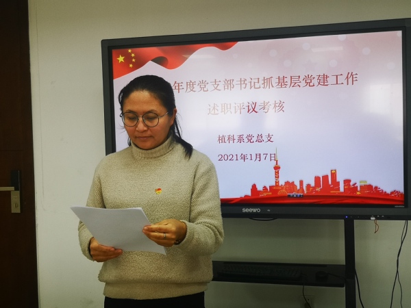 为深入学习贯彻习近平新时代中国特色社会主义思想,推动全面从严治党工作顺利开展,1月7日,植科系党总支在809会议室开展2020年度党支部书记抓基层党建工作述职评议考核会,会议由党总支副书记高东菊主持,全体党员参加。