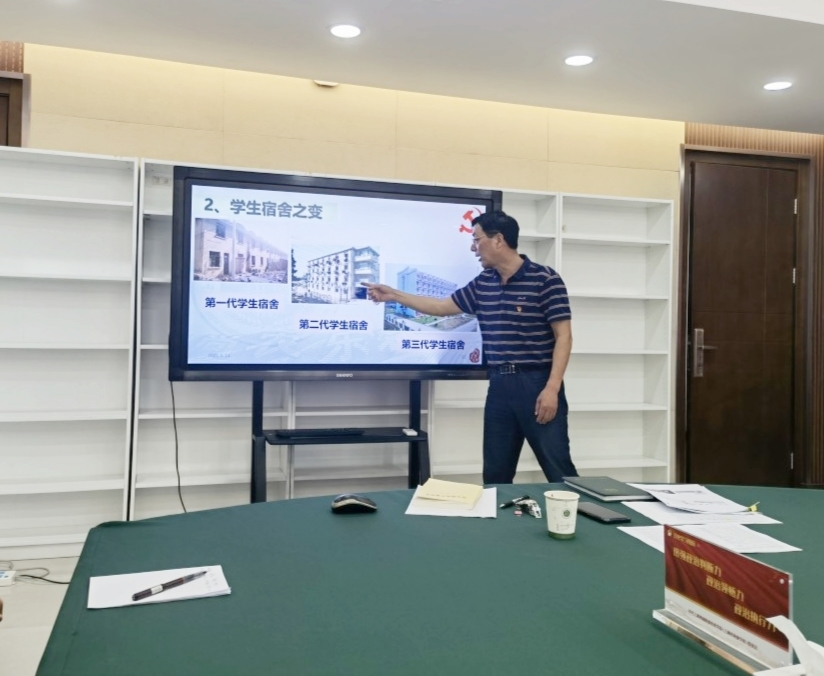 俞锦禄首先从党史学习教育的具体内涵出发,紧密联系此次党课的活动主题,结合学校发展史,讲述了1978年复校后学校发展中的许多个“第一个”,如第一个运动场、第一栋学生宿舍楼、第一个实训基地、第一届文化节等。重点以“学校大门三代变迁”“运动场三代变迁”“宿舍楼三代变迁”“实训基地三代变迁”等为例,阐述了学校复校43年来发生的翻天覆地的深刻变化。