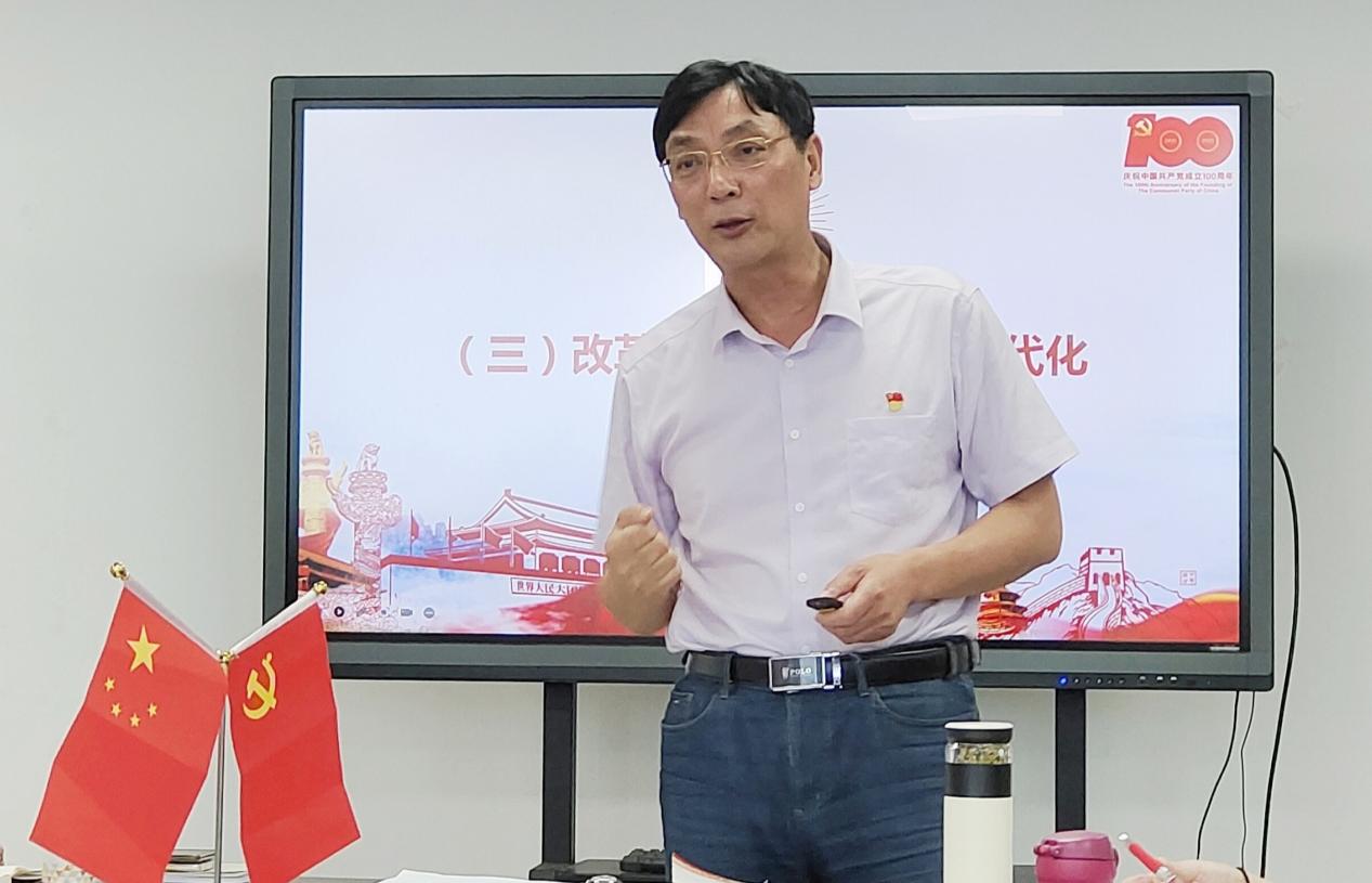 7月6日,在综合楼809会议室,学院党委副书记、纪委书记俞锦禄以“学习党史 砥砺奋进”为主题,为园林系教师党员上了一堂生动的党课。