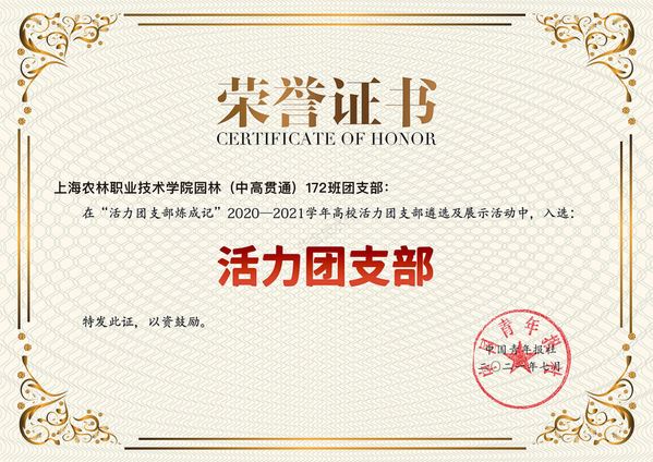 园林系张琰老师所带班级园林(中高贯通)172班团支部再“活力团支部炼成记”2020-2021学年高校活力团支部遴选及展示活动中,入选全国活力团支部。