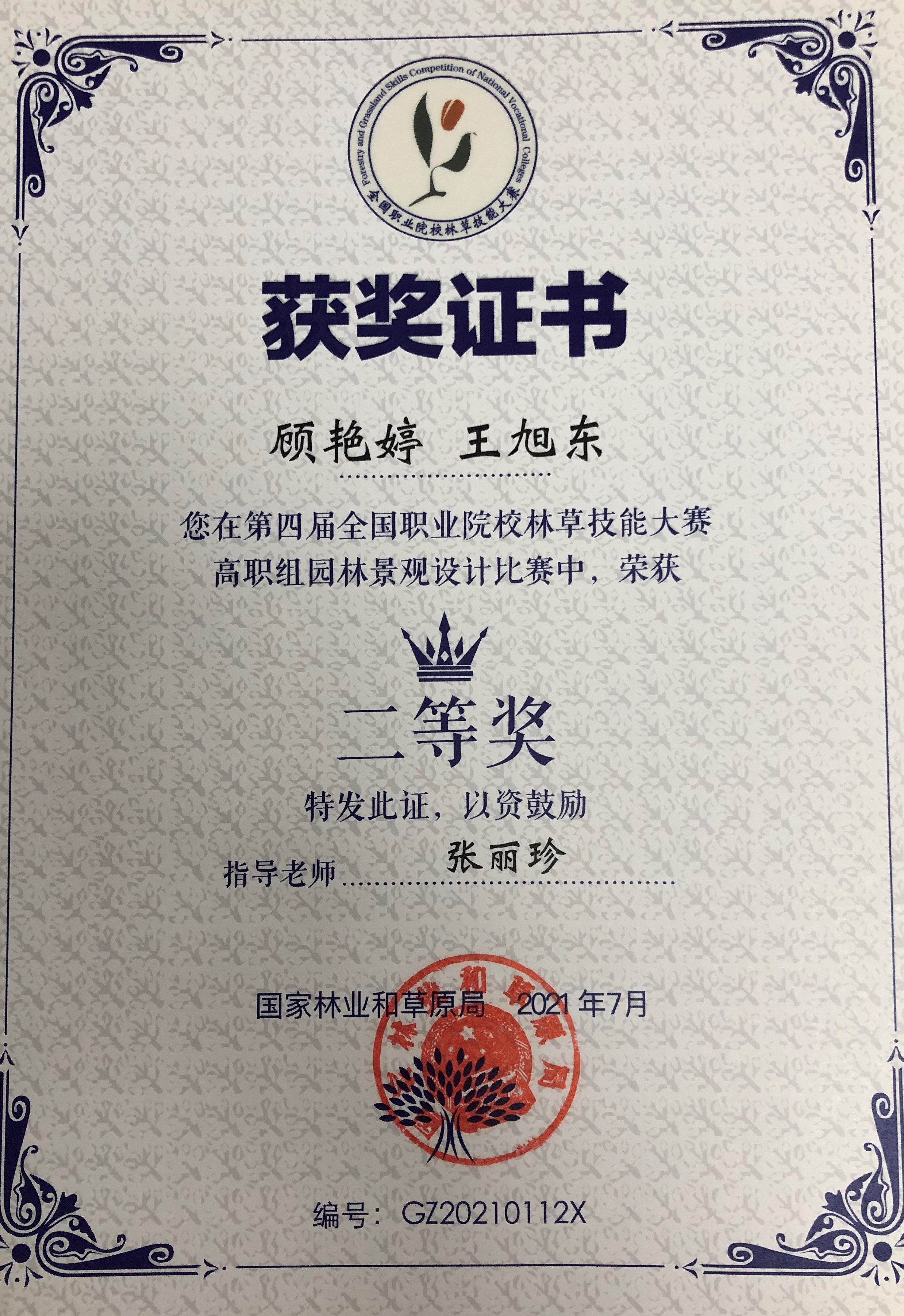 园林系党员教师张丽珍老师带领学生荣获第四届全国职业院校林草技能大赛园林景观设计比赛高职组二等奖