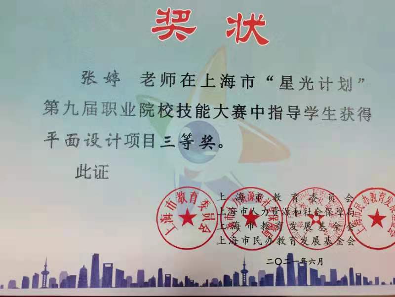 园林系党员教师张婷老师带领学生荣获上海市“星光计划”第九届职业院校技能大赛平面设计项目三等奖