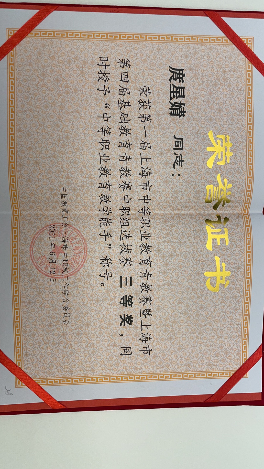 园林系党员教师庹星婧老师荣获第一届上海市中等职业教育青教赛暨上海市第四届基础教育青教赛中职组选拔赛三等奖