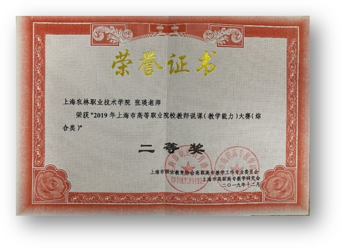 园林系教师党员张琰老师在“2019年上海市高等职业院校教师说课(教学能力)大赛”中荣获综合组二等奖