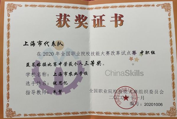 班级十分重视优良学风、班风建设,营造了十分良好的学习氛围。同学们在学习方面勤奋深思,开拓进取,认真对待每一门课程,课堂上能够积极回应老师,课后认真完成并及时上交作业。大家互相帮助,你追我赶,积极交流,学习氛围浓厚,在学校图书馆和一教经常能看到他们自习的身影。在不懈努力下,班级有9名学生通过了英语四级,两名学生通过英语六级;3名学生参加“星光计划”、全国职业技能大赛等获得市级以上荣誉共计15项;1名学生获得上海市奖学金,15名学生获得过校级人民奖学金;8名学生获得农作物植保员高级工证书,1名学生获得食用菌生产工高级工证书,7名学生获得插花花艺师高级工证书。