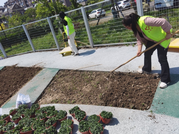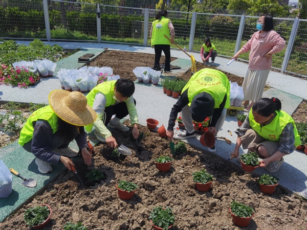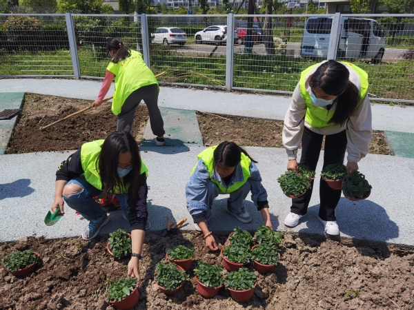 此次活动将乐活农场的设计理念变成了生动的实践。活动中,师生们充分发扬不怕苦、不怕累的团结协作精神,各司其职,分工合作,拿着铁锹、铲子等工具,翻土整地、挥锹挖坑、种植花苗、填土、浇水,在炎炎的烈日下,干的热火朝天,挥汗如雨。每个环节都衔接有序,每个步骤都认真完成,确保栽一棵活一棵,用实际行动践行师生的初心和使命。师生们积极投入,干劲十足,经过一下午的劳动,共帮助四福院种植了薄荷、碰碰香、矮牵牛、海棠、薰衣草、迷迭香等6种幼苗,共计500余株。师生们在活动中用饱满的热情将专业知识运用到整个种植过程中,并对乐活农场的管理人员进行了园艺知识科普。
