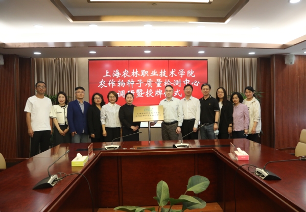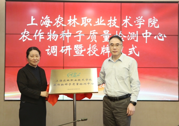 随后,武向文与陈立婧共同为上海农林职业技术学院农作物种子质量检测中心揭牌。