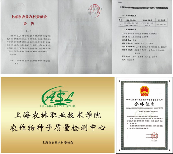 2021年起,植科系启动农作物种子质量检测机构申报的筹备工作,多次派出骨干教师赴市农技中心学习,并多次邀请专家现场指导。检测中心从零起步,从申报请示、材料整理、实验室改造到现场能力验证各个环节,历经一年半的准备和打磨,于今年2月份顺利通过两天专家现场评审。4月14日上海市农业农村委员会发布公告,上海农林职业技术学院农作物种子质量检测中心正式获批为合格种子检测机构,颁发《中华人民共和国农作物种子质量检测机构合格证》,准许在批准的种子检测项目范围内使用农作物种子质量检测机构合格标志,成为上海首家农作物种子质量第三方检验机构。