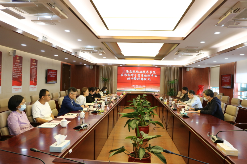 5月24日上午,上海农林职业技术学院农作物种子质量检测中心调研暨授牌仪式在第一会议室举行。上海市农业技术推广服务中心副主任武向文、种子科科长楼坚锋、首席研究员刘康、学院院长陈立婧,科研处副处长周燕华及检测中心全体成员参加,会议由检测中心副主任张微微主持。