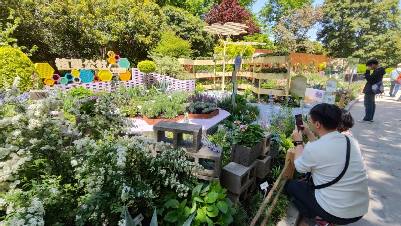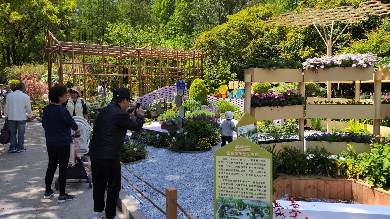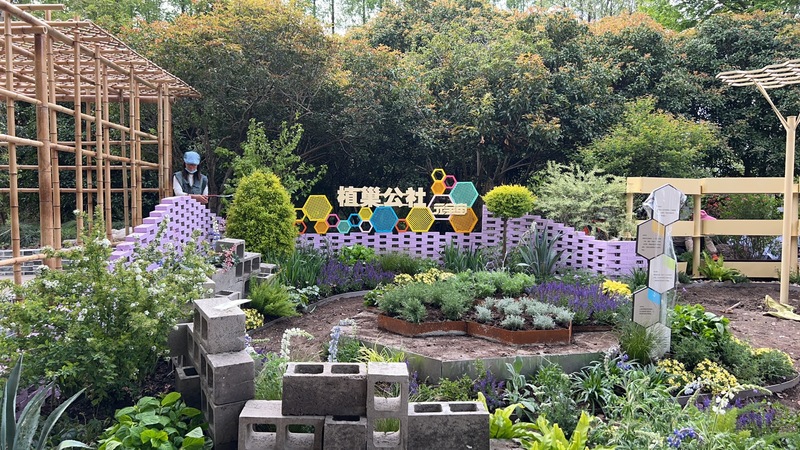 作品已经在上海植物园进行实景展示,其布展施工由植科系师生与上海恒艺园林绿化有限公司共同完成。自3月初起,植科系设计团队积极与施工单位及园区负责人对接,全程参与布展施工流程,汪蓉、陈睿智、李想同学在周清新和赵普莹老师的指导下,对施工过程中的细节进行把控与协商,并完成局部装置的制作与安装,保证展园整体景观效果。同时为更好的展现设计方案中线上线下交互式体验的社区花园设计理念,合作打造的同款元宇宙花园同期上线,让设计方案中线上社交线下活动的新型社区花园设计运营模式得以呈现。