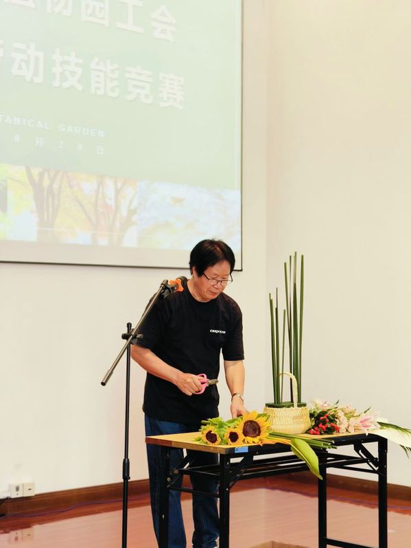 赛前,主办方邀请了首批中国插花花艺大师王路昌为参赛选手进行培训和演示,他深入浅出地阐述了插花花艺六大技法的呈现方法。王路昌毕业于上海市农业学校,“盆景兰花班”学生非常珍惜这次和杰出校友的学习机会,积极与大师互动,在插花技法上有了进一步的提高。