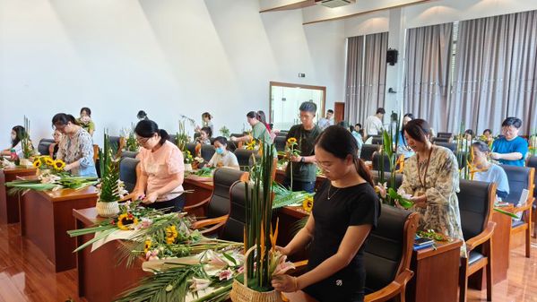本次比赛要求选手只能使用统一提供的“神秘箱”内的花材、花器,独立完成插花作品,使用花材量不少于“神秘箱”内所提供花材量的70%,但不得添加任何其他材料。在比赛中,“盆景兰花班”学生充分发挥专业优势,通过独特的创意和精湛的手艺,将色彩斑斓的鲜花编织成一幅幅生动的画面,创作出既具自然韵味又不失艺术美感的作品,赢得了评委和观众的一致好评。