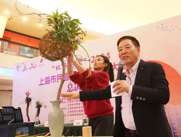 2024上海市民海派插花花艺大赛总决赛由上海市绿化委员会办公室指导,由上海市公园管理事务中心、上海东方明珠广播电视塔有限公司主办,由上海市插花花艺协会承办,由上海虹桥花谷生态科技有限公司协办。上海市绿化和市容管理局二级巡视员许东新,中国资深插花花艺大师、海派插花非遗代表性传承人蔡仲娟,上海东方明珠广播电视塔有限公司总经理郭一峰,上海市绿化委员会秘书处副处长丁志刚,上海市公园管理事务中心主任官蕾,上海市插花花艺协会会长傅徽楠,上海虹桥花谷生态科技有限公司总经理徐波等出席了颁奖大会。