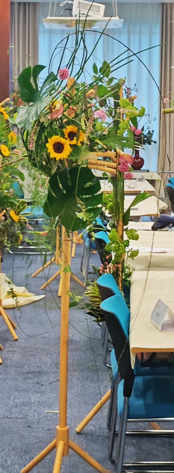 中国插花花艺大师、上海市项一鸣技能大师工作室负责人项一鸣大师对花艺表演进行了全面的解读,他指出,花艺作品的构成首先是设计,符合空间、作品风格以及容器的要求;二是比例关系,处理与环境和容器间的比例关系;三是动态与线条,对植物材料的相同性选择,材料在空间通透和灵气要表现到最佳的状态;四是创意,即主题诠释、原创性和高水平的制作技艺等,同时还有复杂多变且和谐的色彩。