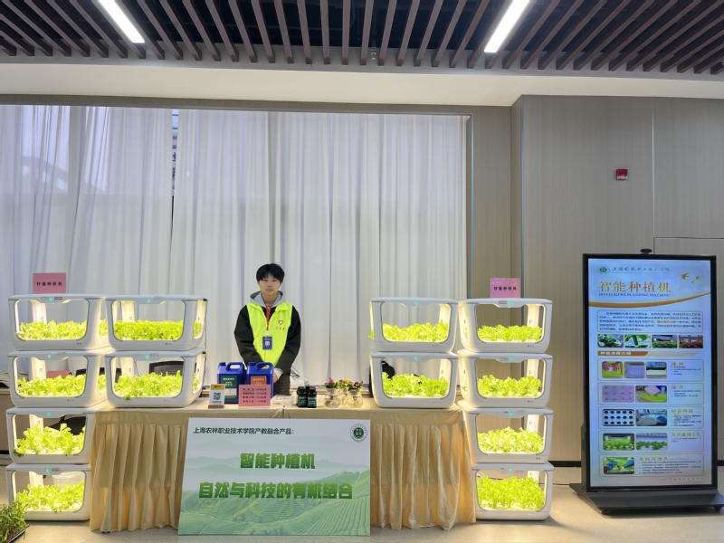展会期间,植科系重点展示了智能种植机、海派非遗插花、创意压花、月见草面膜等产教融合产品。这些成果不仅充分展现了学院“产学研用”一体化的丰硕成果,更彰显了都市现代园艺独特魅力和广阔发展前景,体现了智慧农业、非遗文化、现代美学的创新融合,吸引了众多参会领导及嘉宾的目光,赢得了他们的一致好评。