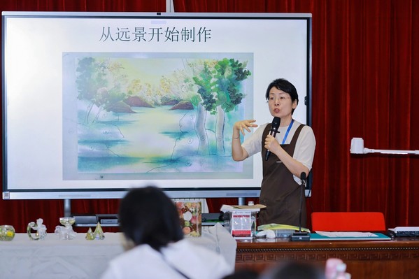 示范环节中李会长以“溪谷风景压花创作”为例,悉心传授立体感与空间感的艺术表现技法。教学过程细致深入、重点突出,学员参与热情高涨,现场气氛热烈,技艺切磋与思想碰撞交织,见证了每一位学员作品的精彩呈现。