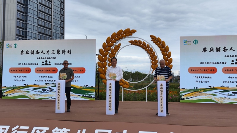 9月21日,“振兴乡村 闵行农好”2025年闵行区第八届中国农民丰收节在尚品颛溪农业研学基地隆重举行。应闵行区农业农村委员会邀请,副院长潘国俭出席活动,并与闵行区农技协会会长徐建平、闵行区宠物服务协会会长吴建清共同发布“农业储备人才汇聚计划”。在启动仪式上,三方将象征合作领域的“金稻穗”植入启动台,标志着未来将围绕“培养、孵化、提升”三大路径展开深度合作,为闵行区加快农业农村现代化培育和输送更多“兴农人”。