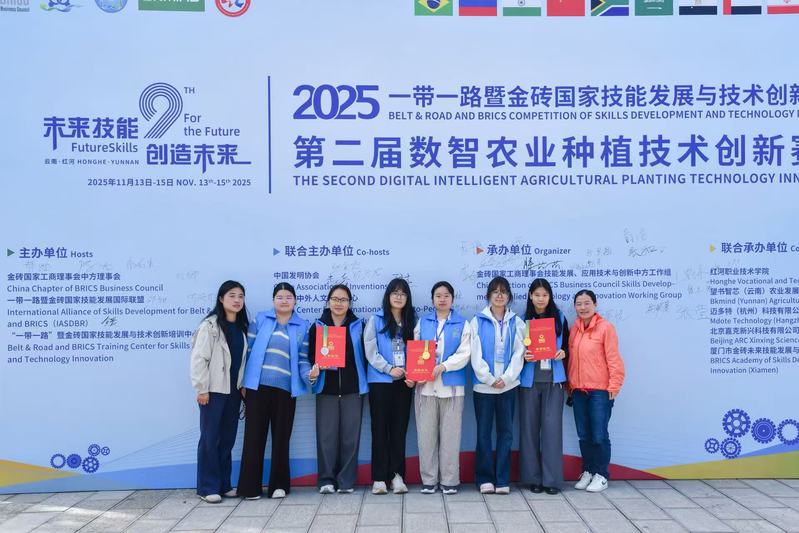 1113-1115日,2025一带一路暨金砖国家技能发展与技术创新大赛第二届数智农业种植技术创新赛项全国总决赛在红河职业技术学院成功举办。本次比赛吸引了来自全国百余所院校的137支参赛队伍、共计428名师生同台竞技。我院植物科学技术系选派的三支参赛队伍凭借扎实的专业基础、精湛的数智技能以及出色的团队协作,在全国众多强队中脱颖而出,荣获佳绩。其中,高职组李琬琳、张心悦(指导教师:张琴/佘为为)以及中职组朱佩雯、茅宇悦(指导教师:许太白/朱骏驰)斩获一等奖;高职组侯玉芳、花榕蔓(指导教师:徐菲/徐俐琴)荣获二等奖。六名指导教师均获“优秀指导教师”称号,充分彰显了我院在数智农业人才培养方面的丰硕成果与雄厚实力。