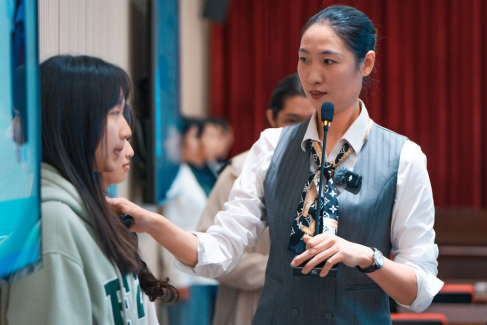 “社交礼仪与高效沟通实战训练营”特邀青浦世外学校礼仪培训师姚玉婷、杨张樑联袂授课,围绕《决胜面试:面试礼仪及技巧》《职场高情商沟通艺术》《职业形象管理与待人接物规范》三大主题,通过互动教学、情景模拟、小组演练等多样化形式,让学员在沉浸式体验中系统掌握职业形象塑造、商务礼仪规范、高效沟通技巧及面试应对策略等职场核心能力。