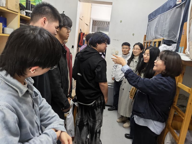 午餐会结束后,系部班子成员深入学生寝室,与同学们亲切交流,关切询问生活状况与实际困难,叮嘱大家养成良好作息、注意宿舍安全卫生,送上暖心关怀。